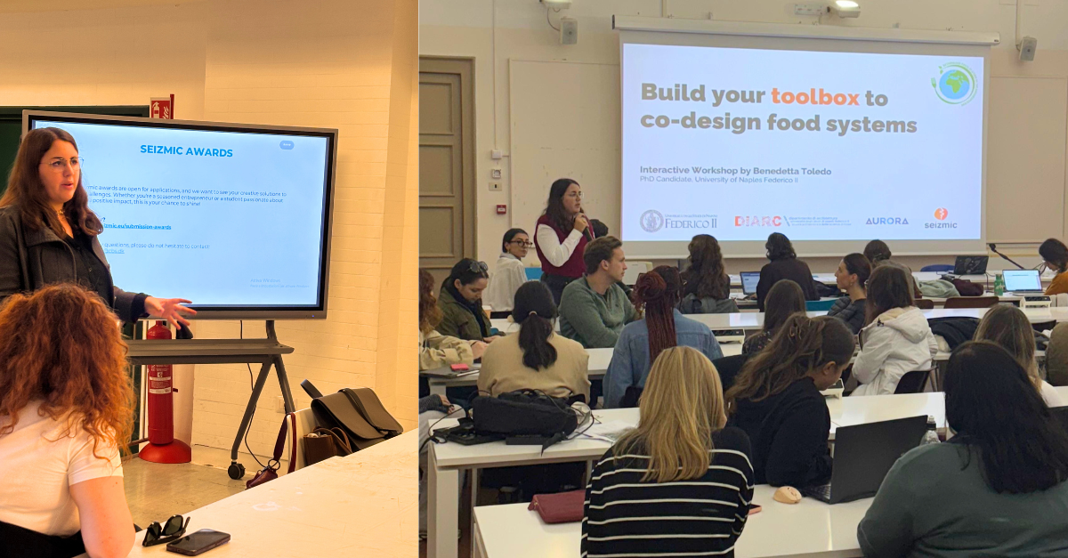 Day two continued with a lecture on “Seeds of Liberation” by Valentina Gómez Alcade from the seizmic MSCA Doctoral Network. The lecture zoomed in on transition design and the politics of traditional food. Following this talk, UNINA doctoral candidate Benedetta Toledo facilitated an interactive workshop called “Build your toolbox to co-design food systems”, where students worked in groups to learn to recognise the key values for sustainable and social innovative food systems.