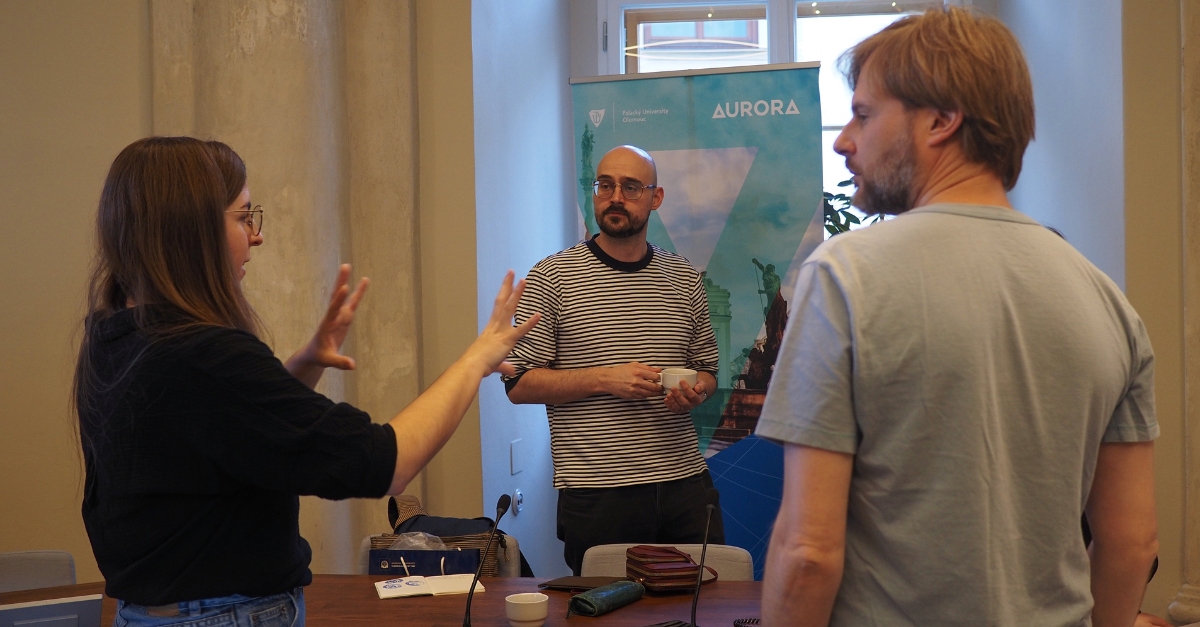 Left to right: Ivona Barešová (UP Vice-Rector for International Relations), Selma Porobic (Aurora Institutional Coordinator at UP), Matěj Dostálek (UP Vice-Rector for Communication and Social Responsibility) and Vendula Lužná, Science Communicator