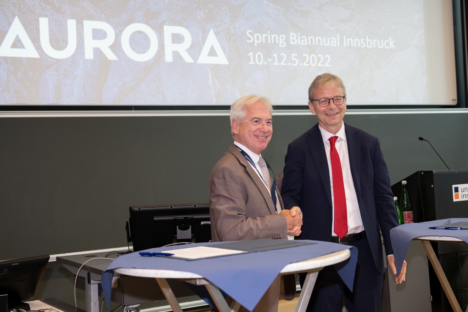 Hosted by the University of Innsbruck, the Aurora 2022 Spring Biannual took place on May 10-12. Tilmann Märk, Rector of the Universität Innsbruck, and Aurora President Jón Atli Benediktsson opened the Biannual with words of welcome. Rector Tilmann Märk specifically addressed Rector Tetyana Kaganovska of the National V.N. Karazin University Kharkiv, an associate member of the Aurora Alliance, who travelled all the way from Ukraine to join the Biannual. Professor Märk spoke about her bravery and the bravery of the Ukrainian nation, and expressed Aurora’s support for her, her staff and students by saying: “I dearly hope that we as the Aurora community can make a positive contribution to your fight against the current atrocities of war in your home country.” Read more about our support for Karazin at the Biannual (and beyond) here.