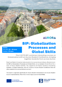Pavol Jozef Šafárik University invites students from across Aurora to Košice, Slovakia to join the BIP on Globalization Processes and Global Skills. Join us between 22 and 26 June for a week of Aurora Student Activities.