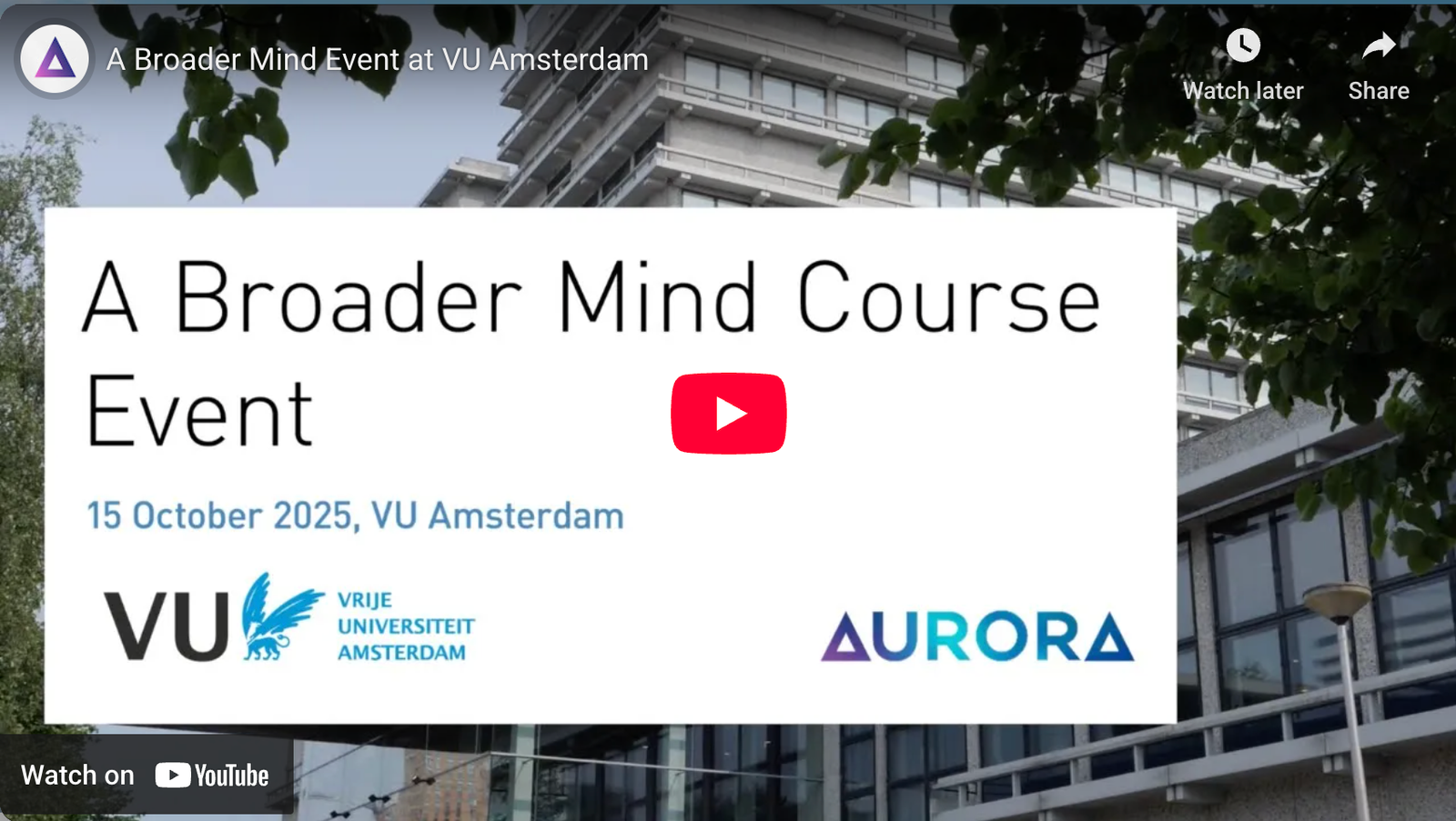 There was also room for inspiration: workshops on teaching methods, presentations of successful Aurora course formats, and a contribution from VU Amsterdam’s own A Broader Mind Course, which exemplifies interdisciplinary learning in practice.